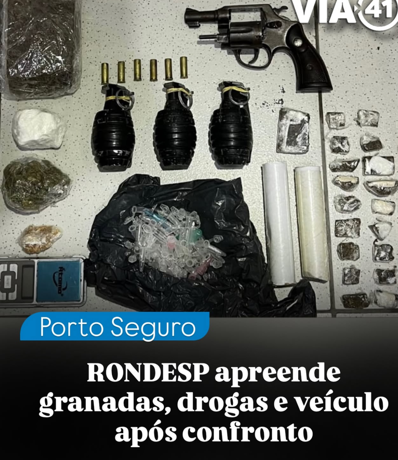 A Companhia Independente de Policiamento Tático (RONDESP) Extremo Sul realizou, na quarta-feira (10), a apreensão de um arsenal impressionante durante uma operação em Itaporanga, Porto Seguro. Entre os itens encontrados estavam três granadas ofensivas, drogas, uma arma de fogo e um veículo.